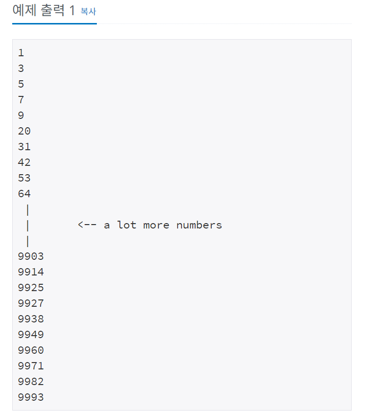 이 생성자가 없는 숫자들이 있는데, 이 숫자들을 찾아서 10000이하까지 출력하는 문제