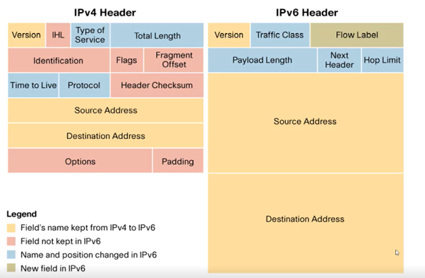 그러면 IPv4와 IPv6의 헤더 형식을 비교해보자.