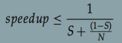 전체 Task를 1로 잡고, Serial하게 동작하는 부분을 S, Paarallel하게 동작하는 부분을 1-S라고 할 때, N개의 코어를 사용하면 얼마만큼의 성능 향상이 이루어지는지 계산하는 것