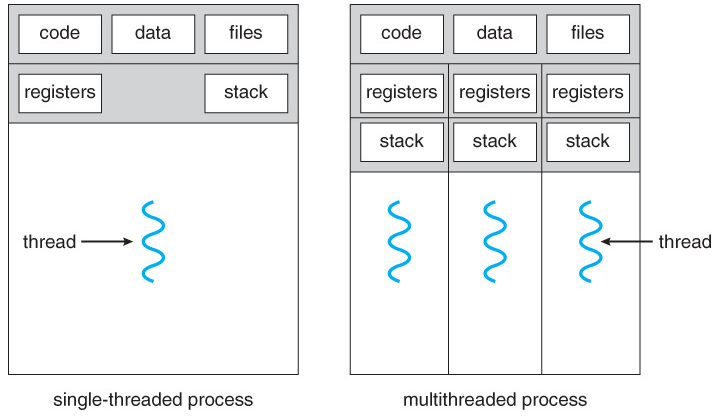 - 프로세스는 멀티 스레드를 가질 수 있음