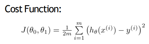 즉, 이 Cost Function의 값이 크다는것은 오류가 크다는 소리이고, 그래서 이 J(θ0,θ1)를 잘 조절해서, 비용이 줄어들 수 있도록 하는게 목표이다.