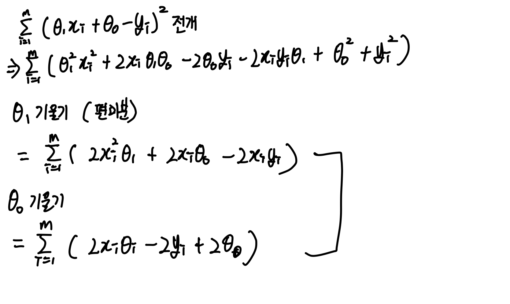 θ0과 θ1을 따로따로 계산해서 변경시켜서 최적의 θ0, θ1을 찾을 것이다.
