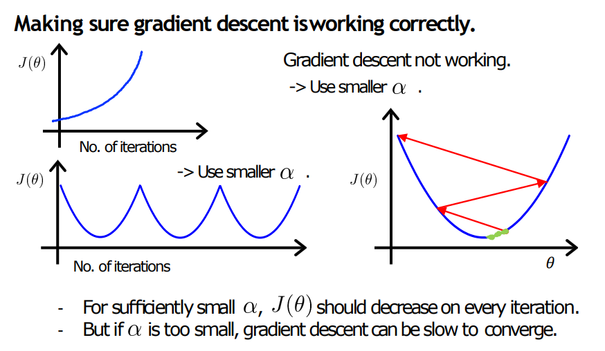alpha가 너무 클 경우, 수렴을 하지 않고 발산을 해 버린다거나, 반복된다거나 할 수 있다.