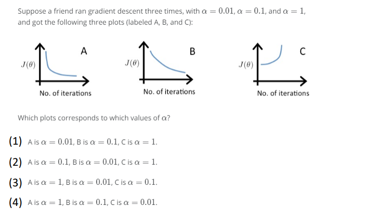alpha값이 너무 클 경우 수렴하지 않고 발산할 수도 있다고 했다. 따라서 C의 값이 가장 크게 될 것이다.