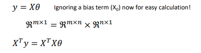 이후, y = X*θ이기 때문에, 역행렬을 곱해서 θ를 구할 수 있게 된다.