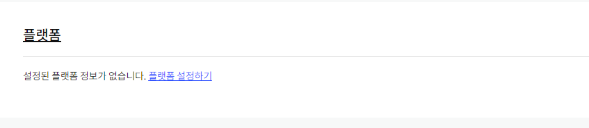 이후에 바로 아래에 보이는 플랫폼 탭으로 들어가서 플랫폼 설정하기를 눌러준다