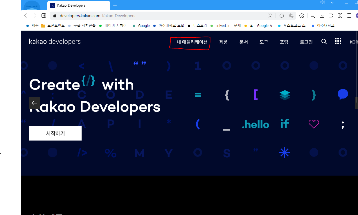 먼저 (kakao developers)[https://developers.kakao.com/]로 들어가서 가입을 진행해주자.