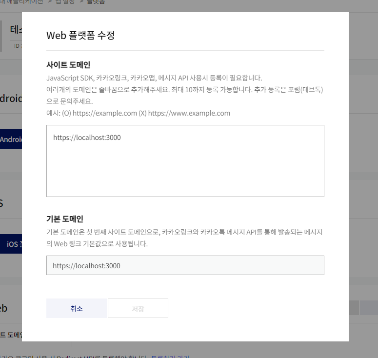 지금은 테스트용이기 때문에, localhost:3000으로 등록할 것이다.